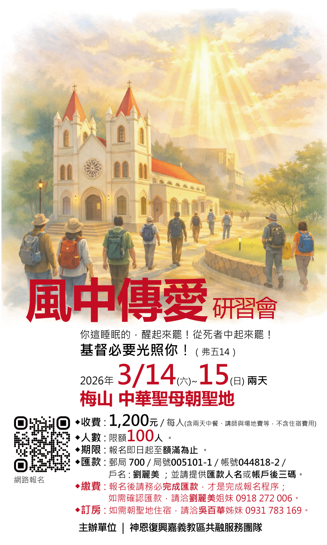 ◆ 聯絡:吳百華姊妹 (0931-783-169,電郵:j20001105@gmail.com)